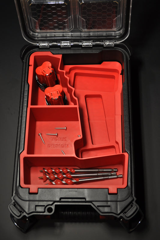 Upgrade your tool organization with our custom-designed Packout insert tailored for M12 FUEL Impact Drivers and charger. Engineered to seamlessly integrate into Milwaukee's Packout deep organizers, this insert offers dedicated compartments and secure fastening for your impact driver, charger, and accessories, ensuring they're always organized, easily accessible, and well-protected.